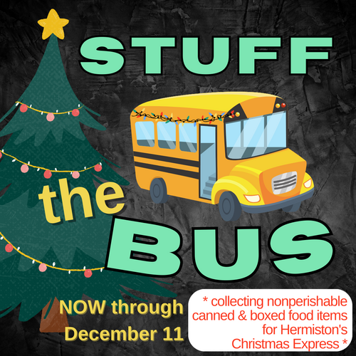 We are collecting nonperishable boxed & canned foods for Hermiston’s Christmas Express. Our classes have competitions going on to see who can bring in the most!